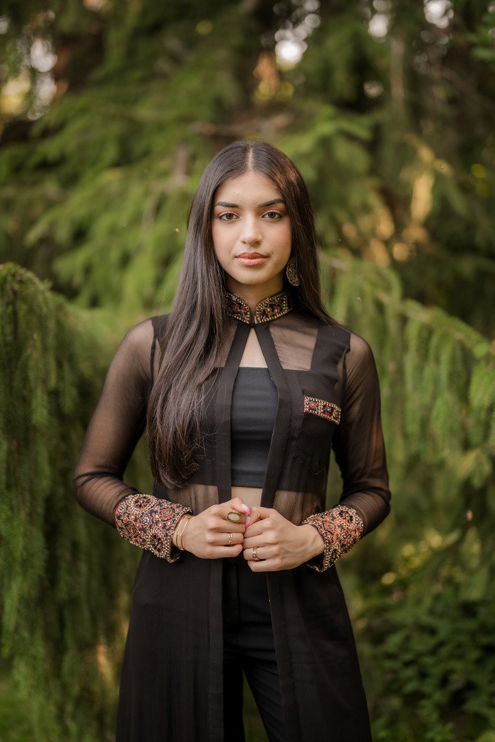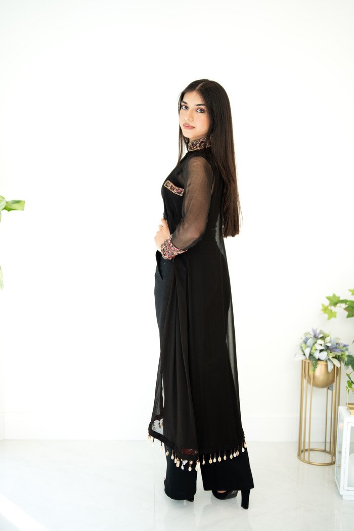 Wear this chiffon jacket over a jeans for more effortless fusion look or add pants and duppatta for more classic look. Can be ordered in white.