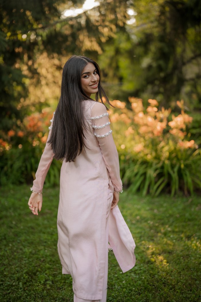 This soft pink in Korean silk is a modern timeless piece. Something that doesn’t go out of style.
