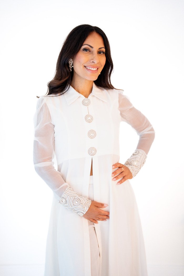 This elegant outfit in Korean silk is a classic staple for your collection. Can be made in black.